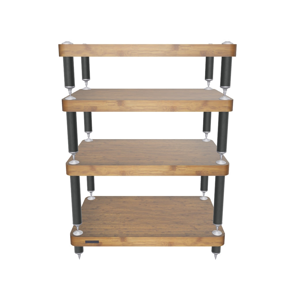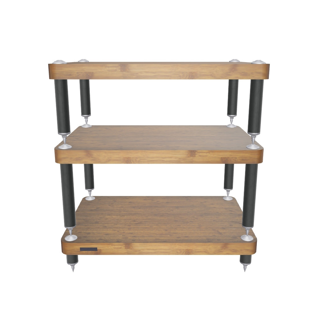 The black powder coated high gloss legs are equipped with twin A.S.I.S.T (Atacama Sonic Isolation System Technology) dampening gaskets and carbon steel studs with aerospace grade Aluminium grounding components matched to full adjustable nickel plated 8mm steel spikes. These components are designed to both dampen and then allow residual high frequency resonance reflection to be channelled away from the supported AV components so allowing them to deliver maximum performance.